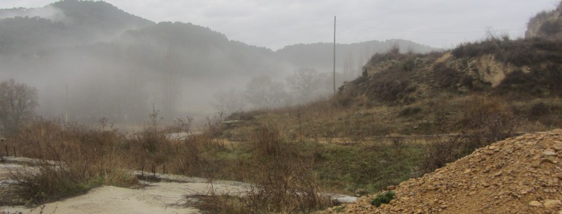 Imágenes. Monte de San Jorge, enfrente de El Frago (Zaragoza). El paisaje duerme entre la niebla y las voces entre los papeles del archivo. (Fotos propiedad de Carmen Romeo Pemán, enero de 2016).
