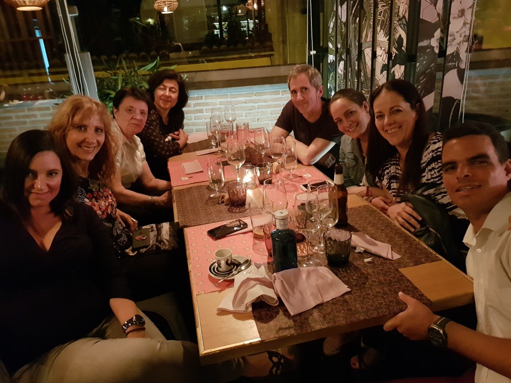 Terminamos el tercer año del itinerario de novela. En junio de ese año, 2018, varios alumnos fuimos a la fiesta de la Escuela de Escritores en Madrid, y allí nos pusimos cara y voz. Mis amigas de Letras desde Mocade, Carmen, Carla y Mónica, y yo misma, ya nos habíamos conocido físicamente en la fiesta de dos años antes. Pero ese año fue todavía más especial. Iciar, que vive en Madrid, se encargó de organizar una cena para todo el grupo después de la fiesta de la Escuela de Escritores. Aparte de las cuatro “mocadianas” estuvo también nuestro profe de ese año, Ismael Martínez Biurrun, otro “crack” que pasó con nota la prueba de superar el listón tan alto que había dejado Fernando Maremar. Carmen llegó desde Zaragoza, Carla desde Barcelona, Mónica nada menos que desde Bogotá, ¡era la segunda vez que nuestra Moni cruzaba el charco, y para asistir de nuevo a una reunión mágica! Y, además, estuvo Mila, nuestra compañera y artista polifacética, que ya ha publicado su novela, Mukimono, que podéis conseguir y disfrutar aquí, y que, además, se ha alzado hace pocos días como ganadora del premio Latino Best Book Award, en la categoría libros de misterio. Ahí es nada, ¡ganar un premio entre todos los libros escritos en español en los Estados Unidos!