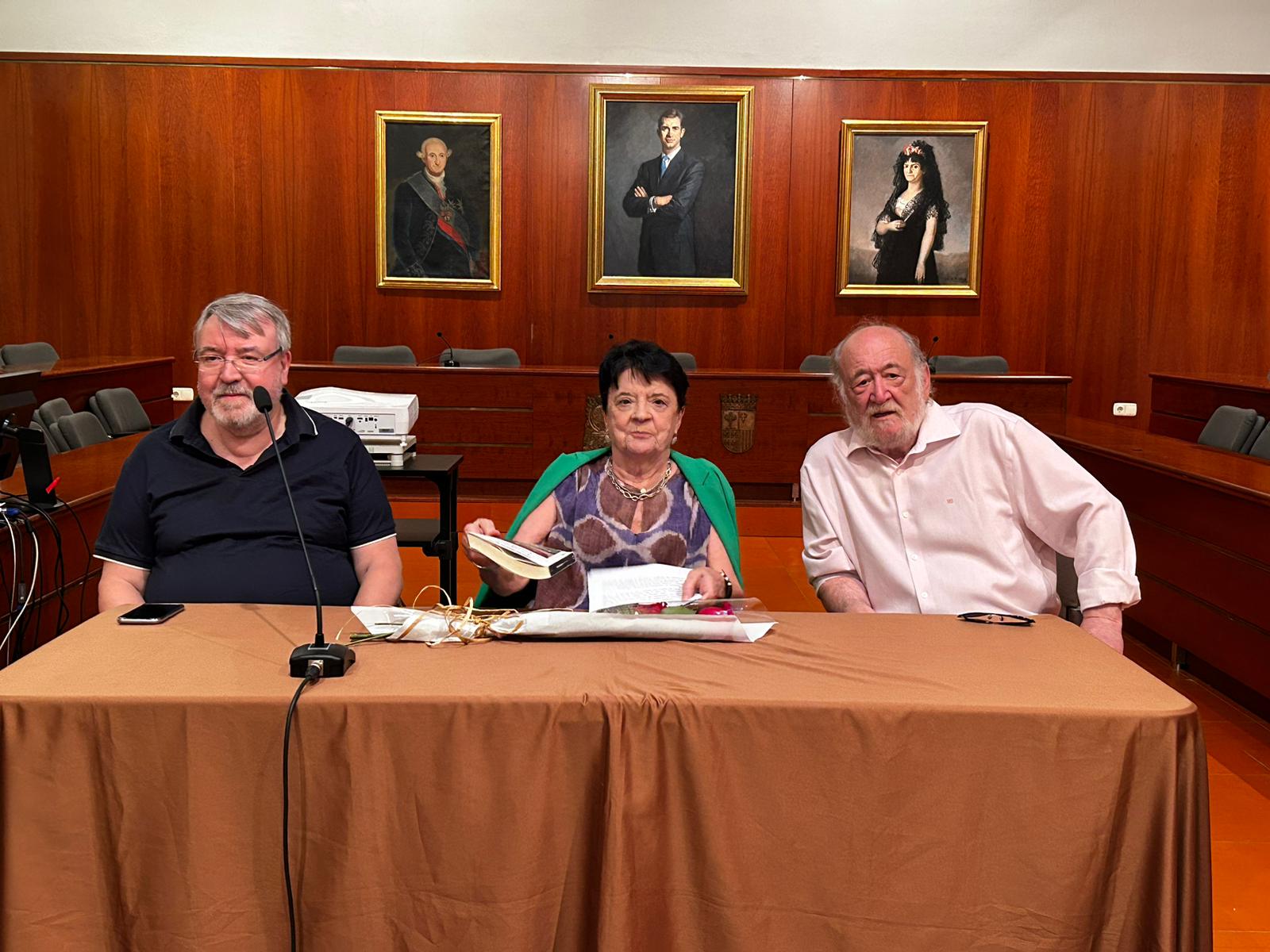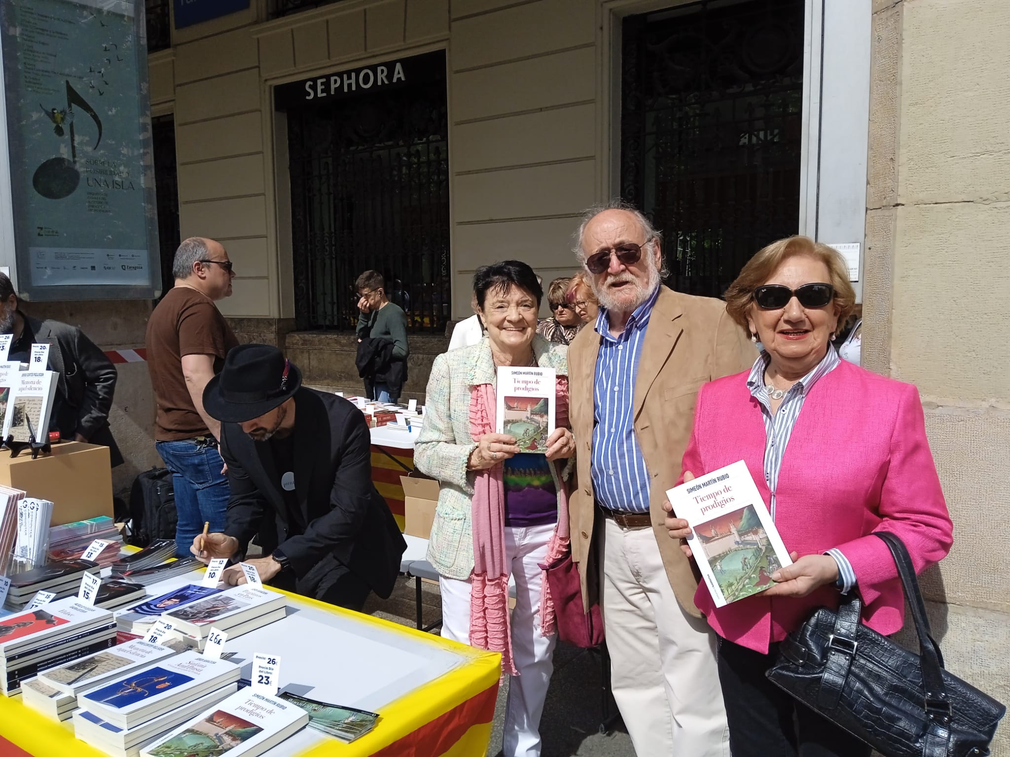 Pilar Nagore, Simeón Martín y Carmen Romeo. Feria del libro. Zaragoza, abril, 2023.