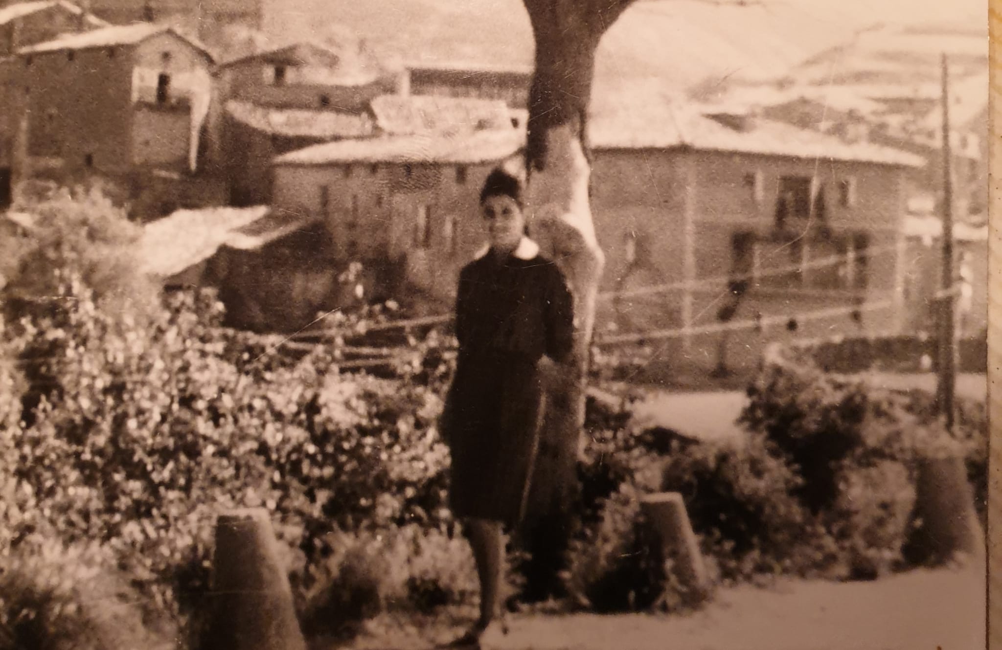 Biel. Teresa, madrina de confirmación, preparada para recibir a Don Ángel Hidalgo Ibáñez, obispo de Jaca desde 1950 hasta 1878.