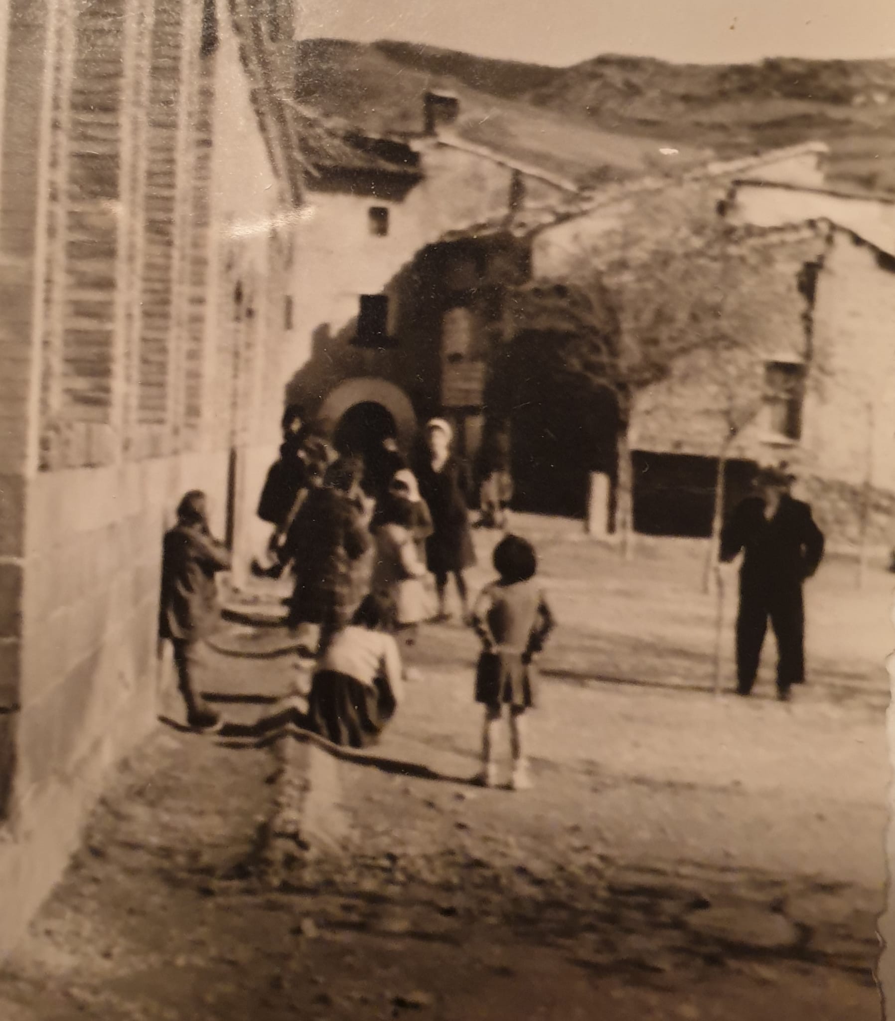 Biel.Niñas en la puerta de las escuela. En la hora del recreo las visitaba Domingo Rasal, el abuelo de casa Tintorero.
